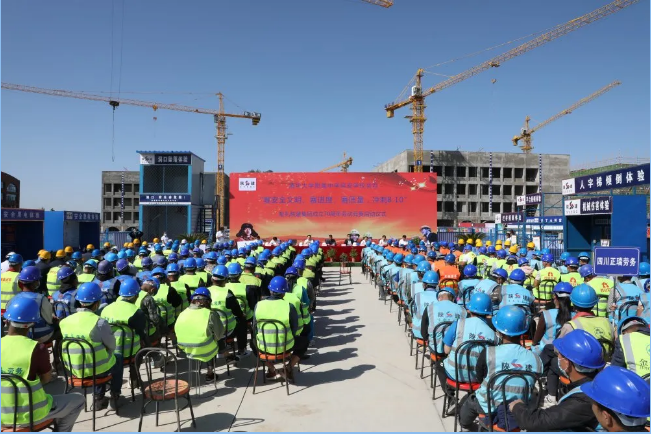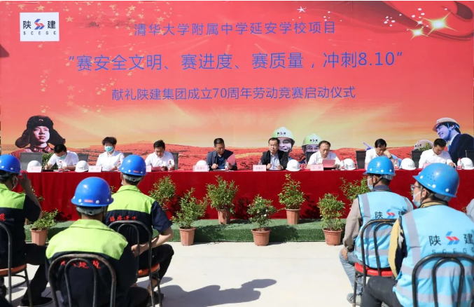 5月28日,陜建十三建公司清華大學(xué)附屬中學(xué)延安學(xué)校項(xiàng)目舉行“賽安全文明、賽進(jìn)度、賽質(zhì)量,沖刺8.10”獻(xiàn)禮陜建集團(tuán)成立70周年勞動(dòng)競(jìng)賽啟動(dòng)儀式。