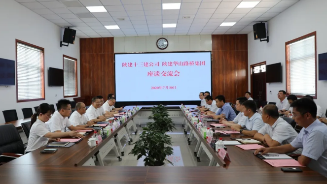 華山路橋集團(tuán)副總經(jīng)理方曉明、張華,總會計師李軍,陜建十三建公司副總經(jīng)理鐘卓寶、總工程師王弘起、總會計師王磊,副總經(jīng)理景益濤及雙方相關(guān)部室負(fù)責(zé)人等參加座談。